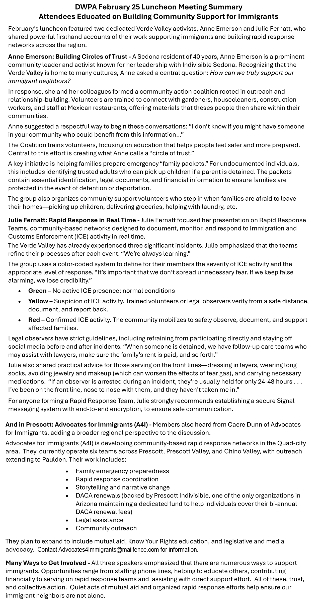 DEMOCRATIC WOMEN OF THE PRESCOTT AREA