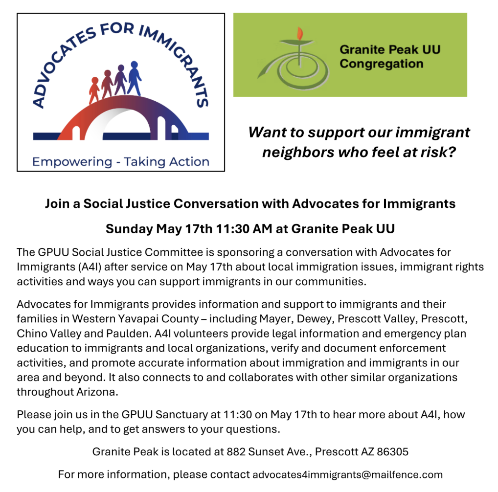 Prescott - GPUUC - Granite Peak Unitarian Universalist Congregation (GPUUC) 882 Sunset Ave. - Rosemary Agneessens - peac4schools@gmail.com, 11-3pm