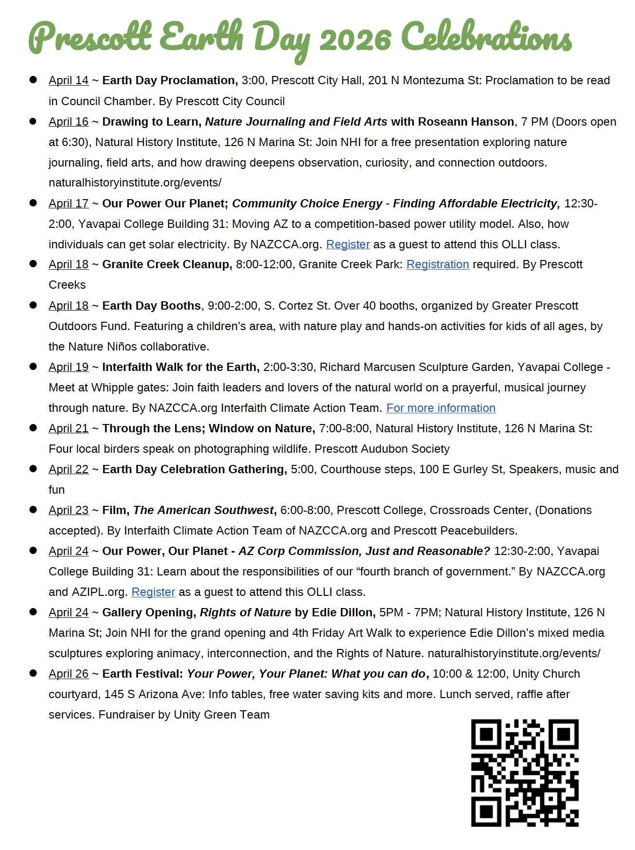 Prescott Public Library Founder’s Room, 215 E Goodwin Street. Learn about and engage with the PROTECT Campaign which aims to obtain a climate agreement profile with the City of Prescott.